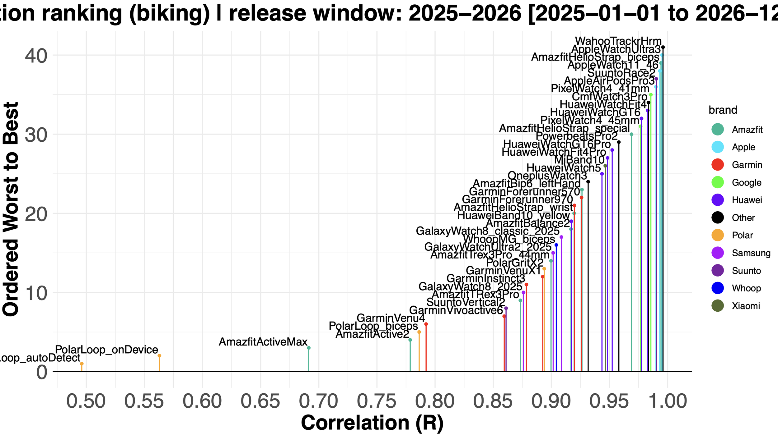 Heart Rate Tracking Performance For Outdoor Cycling (Best Devices On The Top Right)