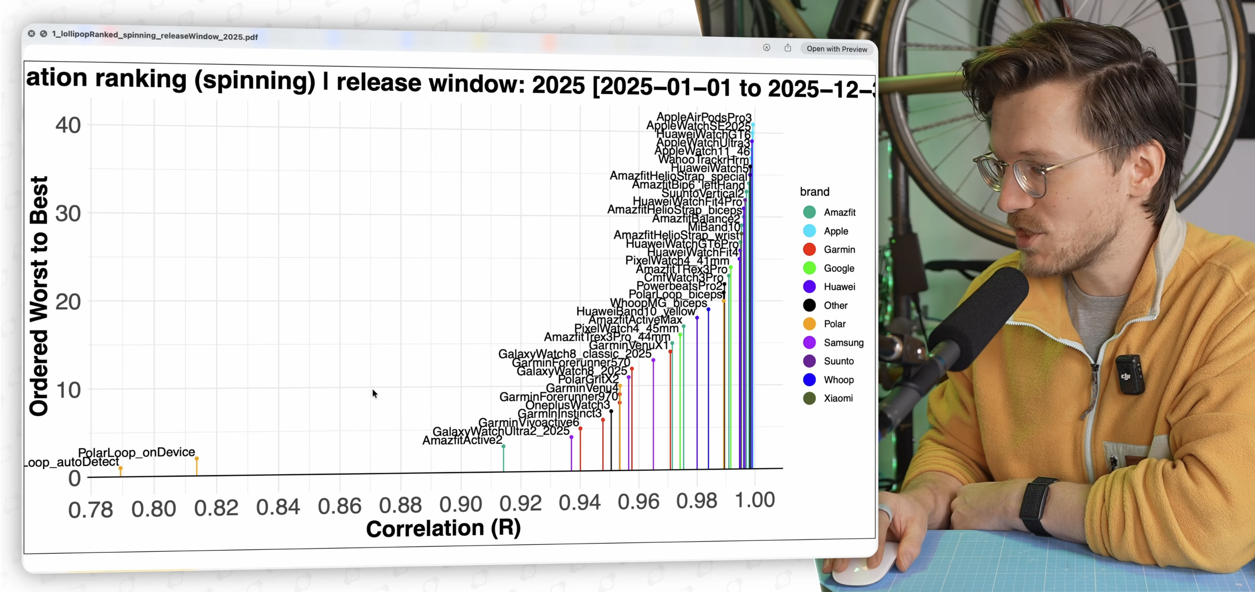 Indoor Cycling: Achieved a near-perfect 0.99 correlation with an ECG chest strap [03:52].